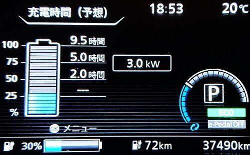 日 … 2023/10/14 場所 … 自宅 設備 … 普通充電(3kW) 気温 … 17℃ 充電時間 … 7時間00分(タイマー充電) 充電前 … 30% 充電後 … 91% 使用量 … 56%(前回充電後残量からの使用量) 充電量 … 61% 充電率/分 … 0.15% 総電力使用量 … 18.2(kWh) 電力消…